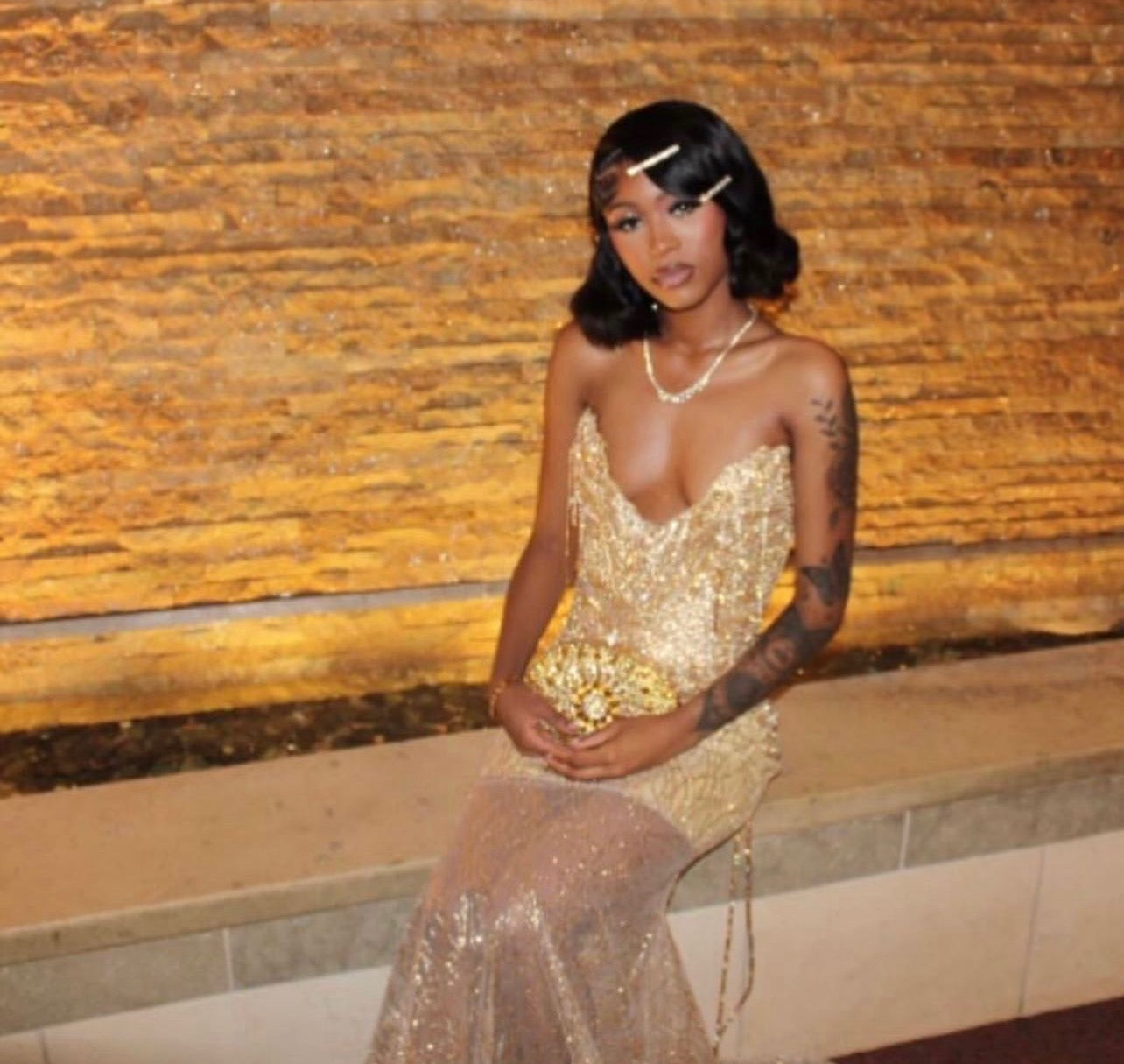 • Gold rhinestone exterior